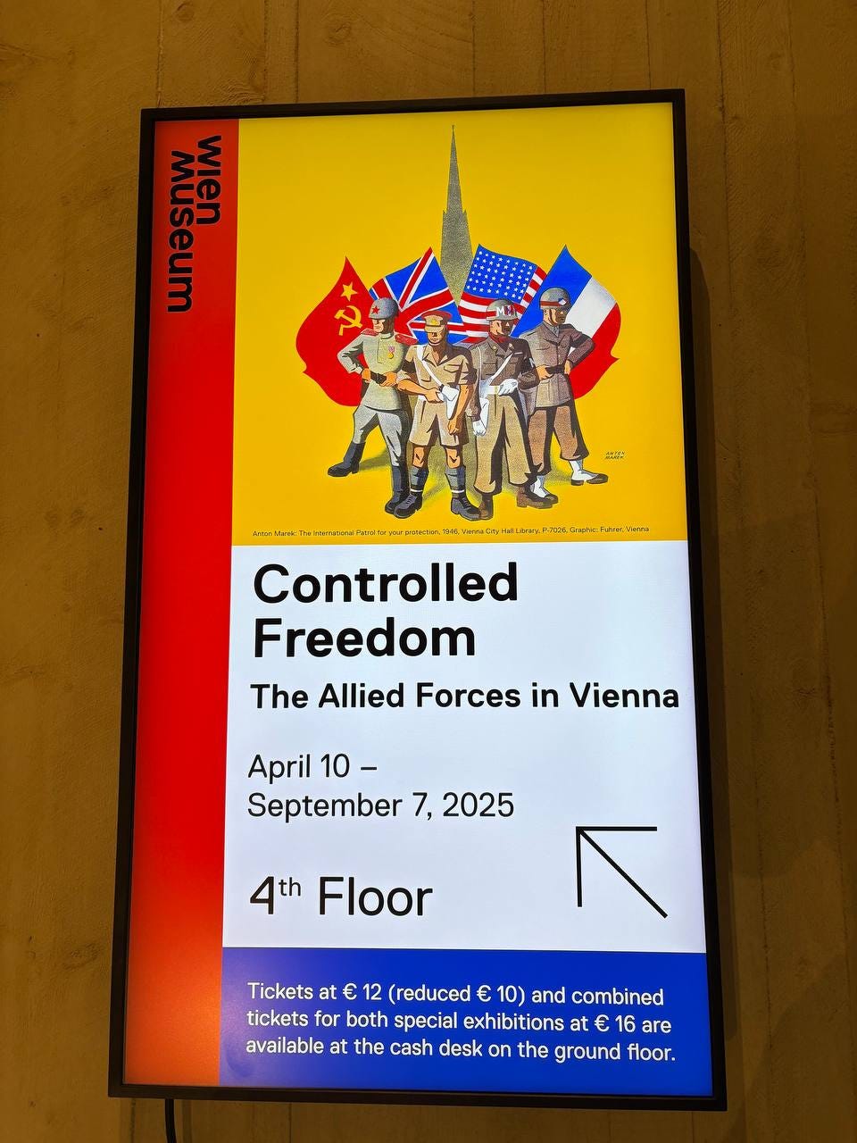 Later that afternoon, I visited a new exhibit in Vienna’s newly renovated Wien Museum about cultural life in Austria’s capital under Allied occupation post-World War II. It is a really interesting exhibit, I learned a lot I didn’t know, and everything is also in English so if you know anyone coming to Vienna this summer, it is worth a visit. At the end, you can pop out onto the balcony cafe on the floor below for some nice views over the city center.