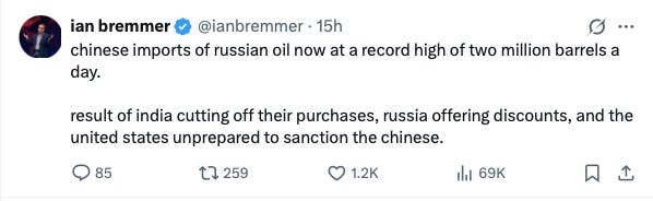 Let’s also not forget which other countries are continuing to fund Russia’s war (I did see the kung-foo robots for the Lunar New Year, and yes, they are impressive).