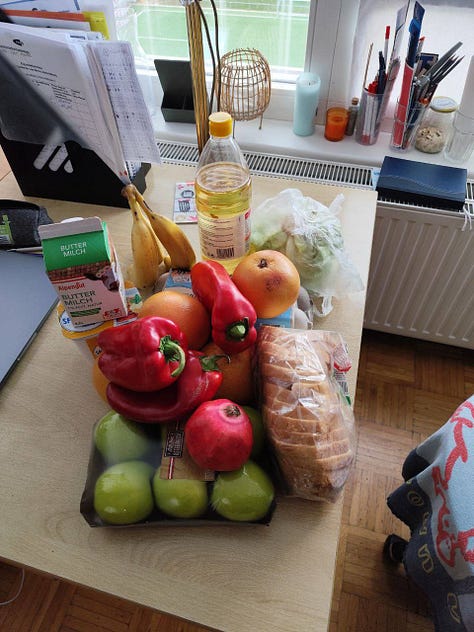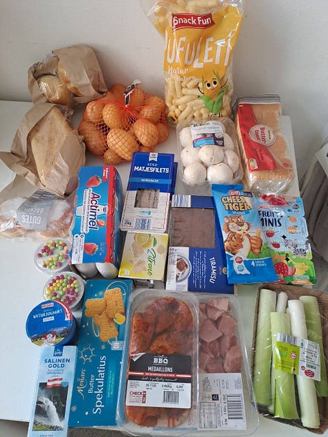 Turning back to Austria, we had a good week at Cards for Ukraine. I never expected to still be able to distribute grocery aid in 2025 (!), but here we are. Mario and I sent out over 300 €50 supermarket gift cards this week, and the lovely grocery photos have started to flood my inbox, along with words of gratitude in a multitude of languages. Very grateful this is still possible. Reading about the fiasco with SNAP benefits in the U.S. due to the government shutdown, I have been thinking about how something so simple as helping people buy groceries can really have a huge impact. I love the way our program works that we simply deliver a cash equivlent by mail, and leave the shopping to the person asking for help, thereby delivering a little bit of dignity in the process. I can only add that if you feel like making a charitable donation this holiday season, we promise to get those cards to Ukrainians in need. We buy the stamps and envelopes ourselves, and are zero overhead. We have now distributed over €300,000 in aid through our website alone, which is actually incredible. We have a waiting list of over 1,000 families, and it would be amazing to be able to work some of that off this holiday season. I also distribute directly to pensioners and moms who write to me.